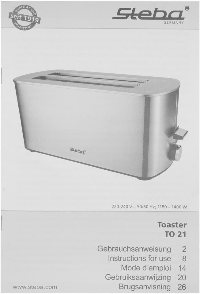 StebaТостер Steba TO 21 серебристый